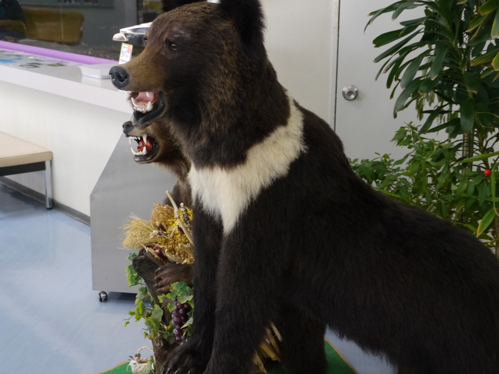 鹿をみて10分後くらいに到着したのは南富良野の道の駅、ログホテルラーチの支店ご飯屋ラーチ熊が2頭玄関でお出迎え