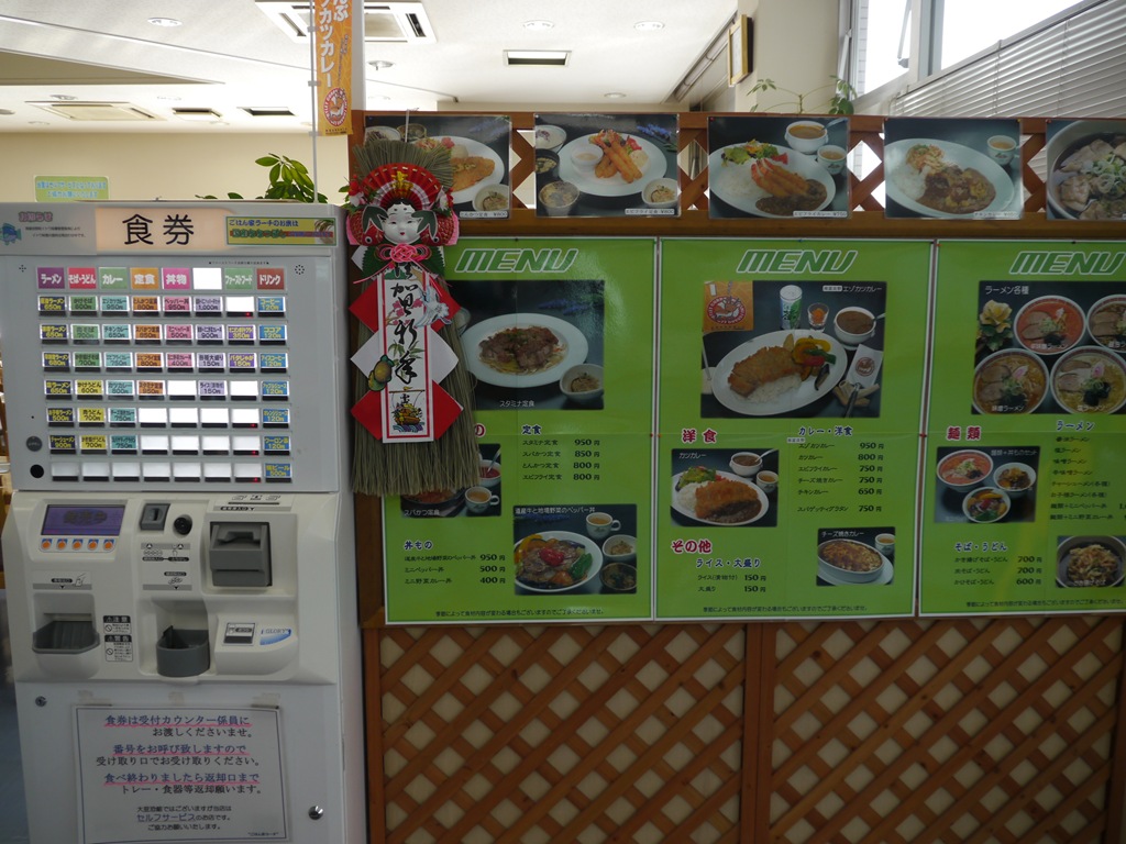 道の駅にあるごはん家ラーチは、セルフサービスです。まず食券を購入します。エゾシカをみたあとなので、子どもに食べないでと言われましたが、エゾシカ料理の食券を買ったため、家族と離れたテーブルで食べることとなりました。