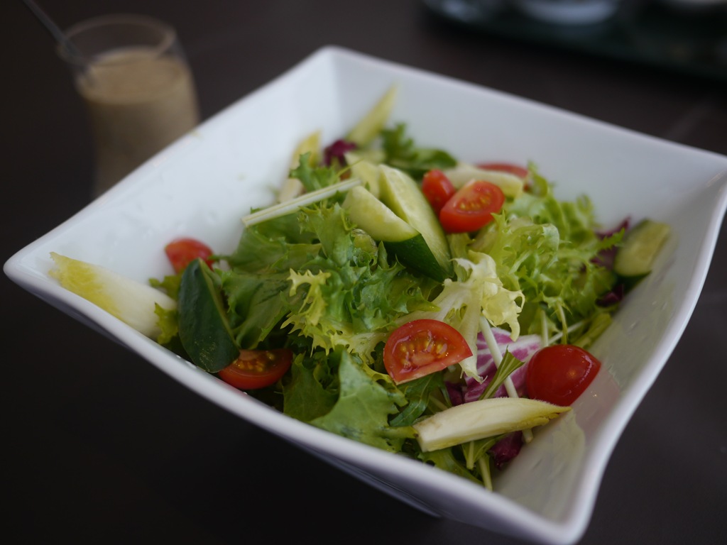 ラーメンサラダ 650円 色とりどりの野菜がたっぷり、香りごまのつけだれをかけていただきます。