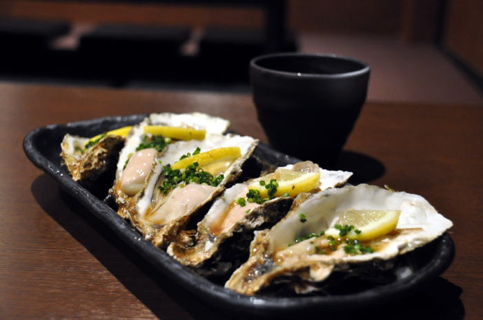 この日は移転2日目で、ちらしを持って行くと、ごったがえし名物の厚岸のぷりぷりの生牡蠣5個がサービスされるといううれしい日でした。ごったがえしでいただく厚岸の牡蛎は新鮮で濃厚な味が楽しめました。一緒に飲んだのは三岳のロックともよくあいました。