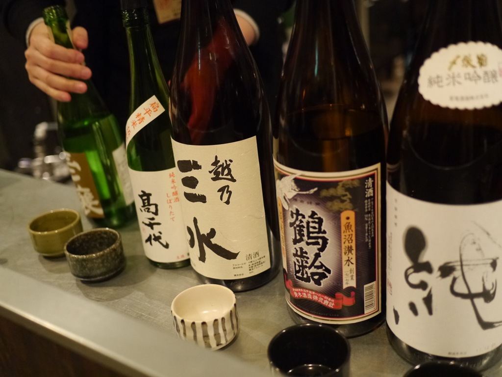 お世話になった方と、平岸で宴会をした帰り、地下鉄に乗る前においしいお酒をもう一杯と伺ったのは地下鉄直結平岸ゴールデン街奥の炭やき黒丸です。何を飲もうかとカウンタに座ると、まるお酒やさんの試飲コーナーのような光景にびっくり、うれしいことに、試飲のお酒で味を確かめてからたのめます。新潟出身の店主さんのこだわりのお酒が並びます。