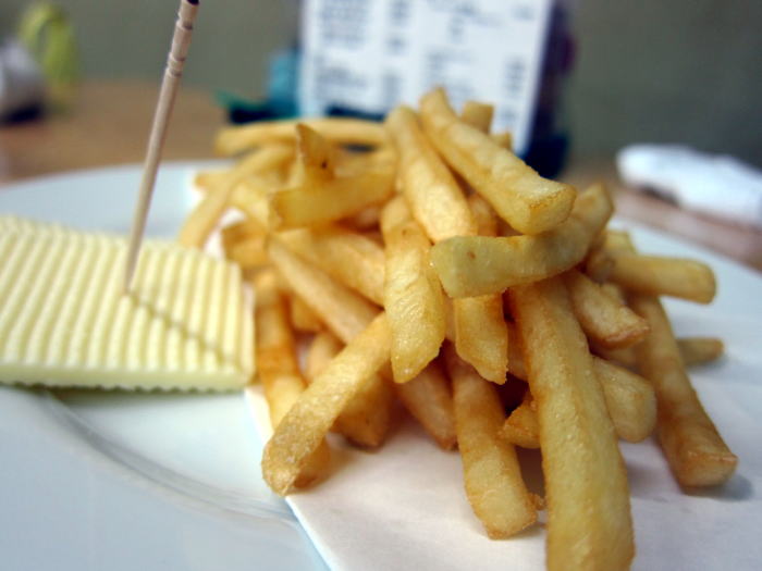 あげたてのポテト、塩加減がちょうどよくておいしい、ビールによくあいます。