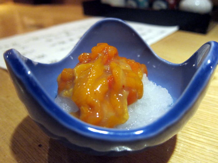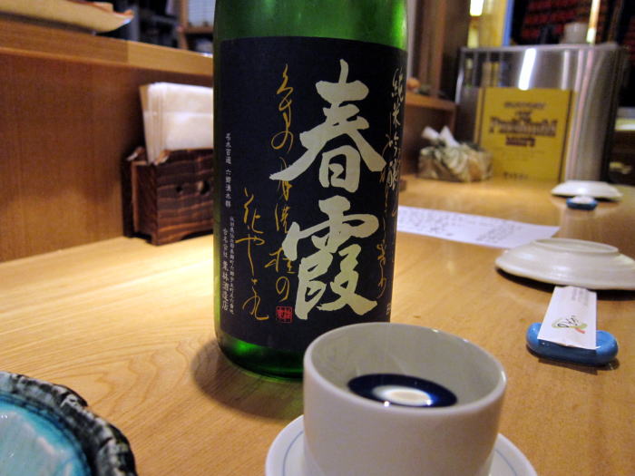 これでおとなしく帰ろうと思ったのですが、ついよくばってもう一品たのんでしまいましたお酒といかごろ味噌いため、いかごろ味噌いため、かなり酔いもまわって写真をとるのを忘れておいしく食べてしまいました。一緒に飲んだ秋田の栗林酒造の春霞、これもおいしいお酒です。濃厚な料理に負けない強さがありました。
