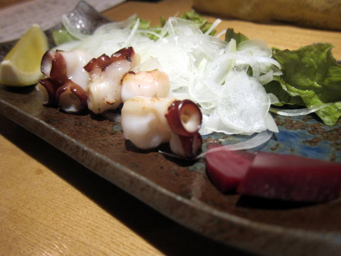 たこ足のしょっつる風味焼き 350円 噛んでおいしいたこがうまみのきいた塩味でお酒がすすみます。