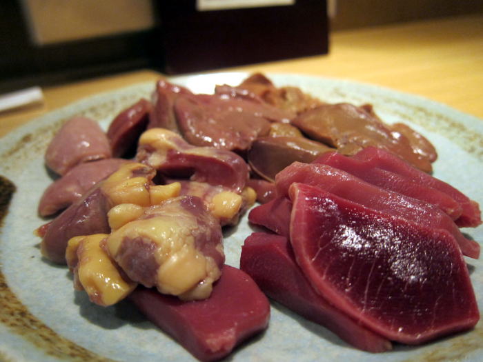 もつ鍋の準備ができてお肉が運ばれてきました。比内地鶏のもつが運ばれてきました。1人前とはいってもとてもボリュームがあって驚きました。