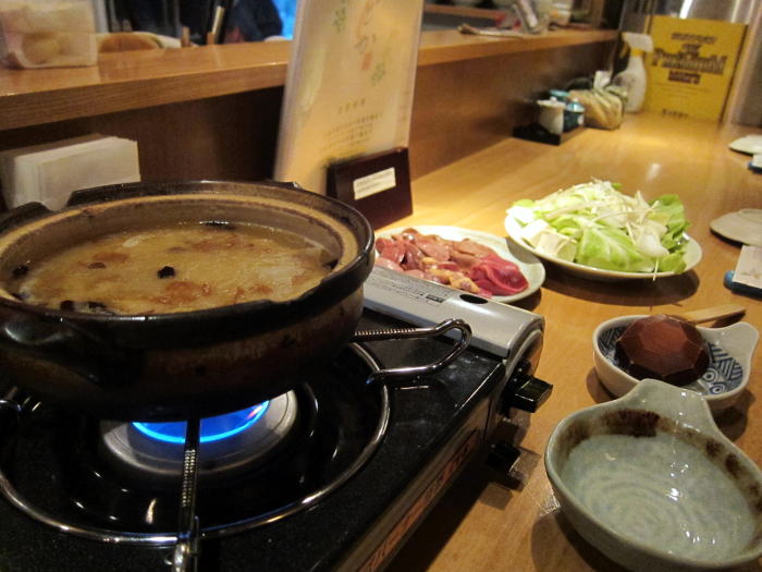 お通しを食べながらビールを飲んで、何を食べようかとメニューをみると、看板メニューのきりたんぽとのどか風もつ鍋どちらにしようかと思いましたが、食べたことのないのどか風もつ鍋を選びました。