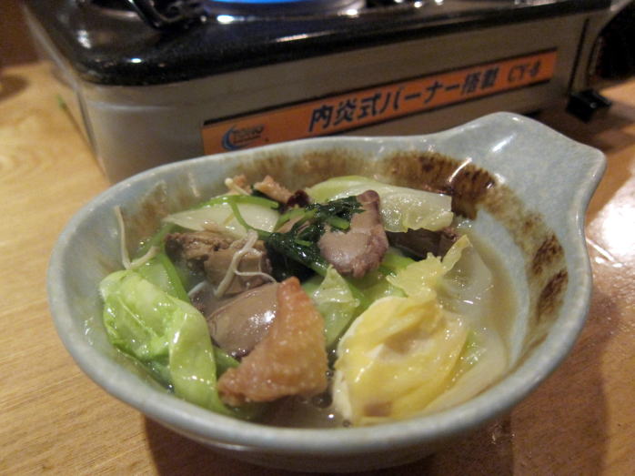 のどか風もつ鍋 一人前からたのむことができます。新鮮野菜と比内地鶏がたっぷりで、スープは比内地鶏のうまみがたっぷりです。