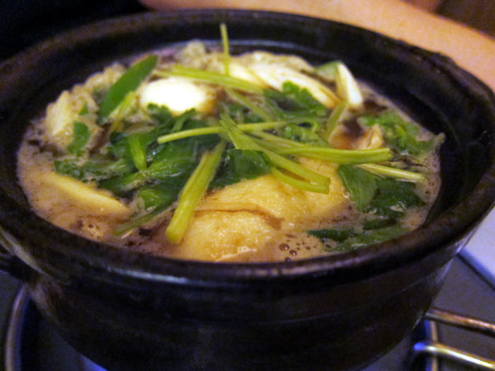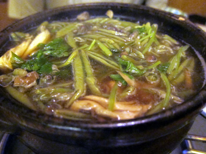 比内地鶏の濃厚なスープに、たっぷりの白神山地のじゅんさいがはいったなんとも、豪華な鍋です。大変おいしくてかなりお酒がすすんでしまいました。