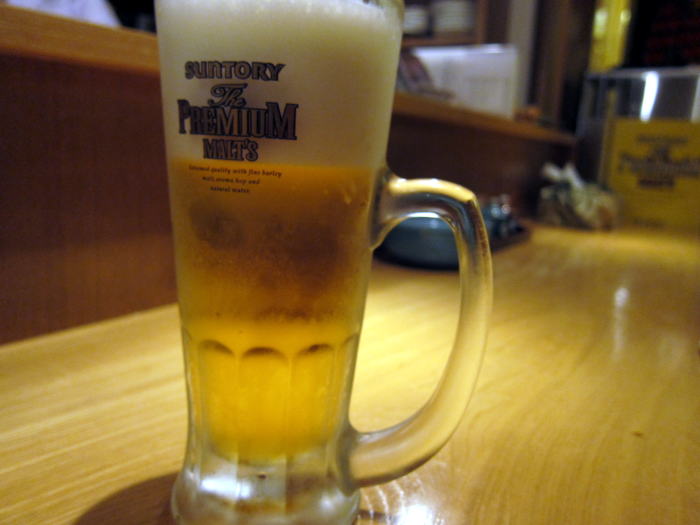 まずは生ビールです。よく冷えたグラスにはプレミアムモルツが入っています。この日はお店まで中島公園から歩きましたがきりりと冷えたおいしいビールにうれしくなりました。