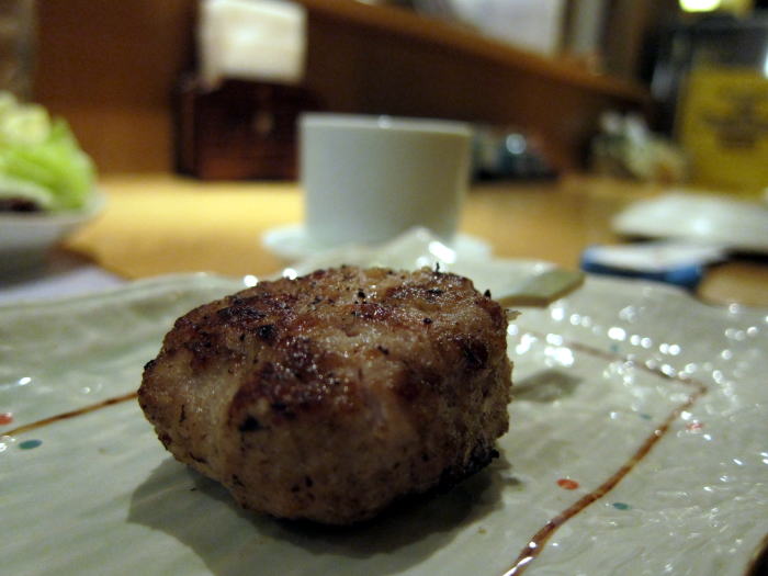 比内地鶏つくね焼き 選べるおつまみ三品目 比内地鶏のうまみがつまったつくねを丁寧に炭火で焼いてだしてくれます。とてもおいしいおつまみでした。