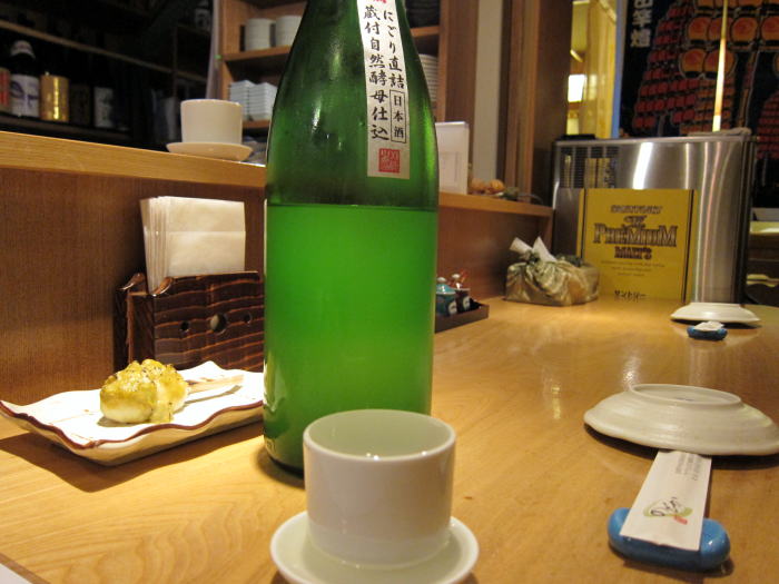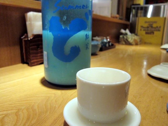 刈穂にごり直詰蔵付自然酵母仕込み これも初めて飲む酒です。刈穂のうすにごりがあると初めて知りました。なんとも、夏に合うお酒です。びんのにごり具合もとてもきれいで微妙なグラディエーションにみとれてしまいました。味は刈穂らしいしっかりとした味です。とてもおいしい。選べる地酒の二杯目も大満足