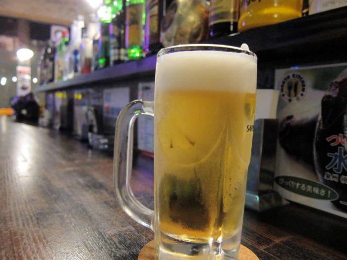 版焼くセットは飲み物2つとおつまみ2つで1000円というとても気合いの入った物です。アメリカンな居酒屋ということで、ボリュームも満点でカロリーもしっかり摂取できます。この日はおつまみにたこザンギとオニオンフライリングをたのみました。飲み物は2杯とも生ビールです。
