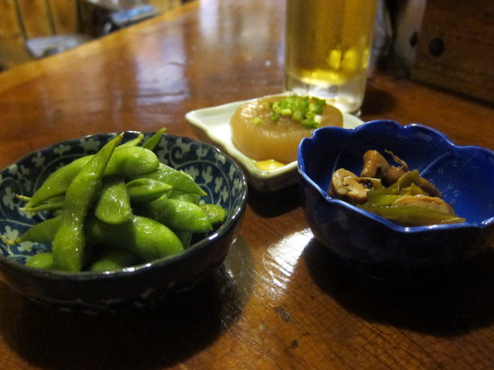 まずは晩酌セットの小皿3品が運ばれてきます。小皿といっても、たっぷりな肴に満足感があります。