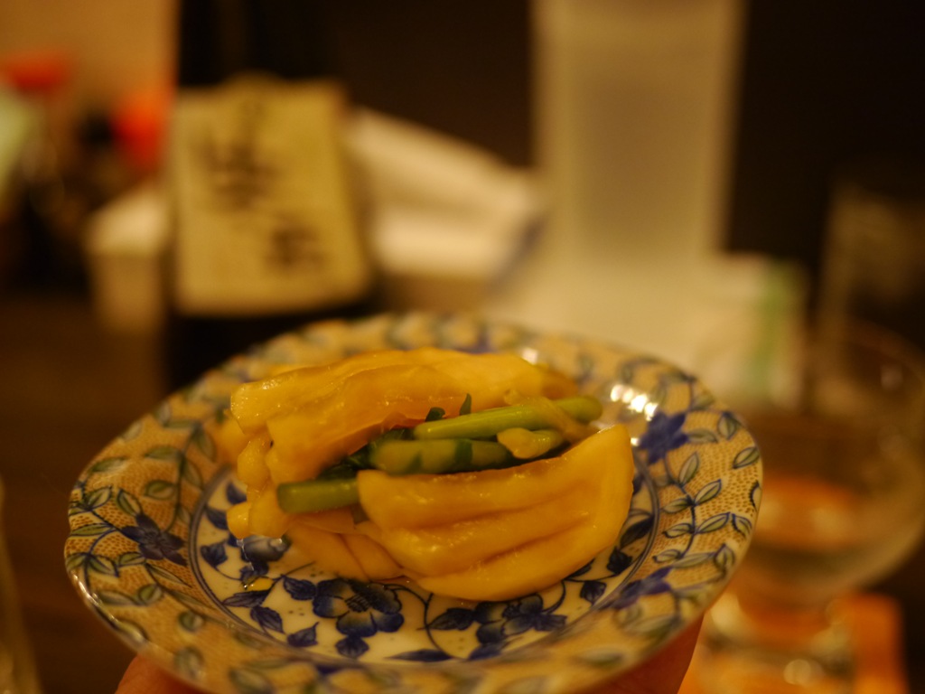 この日のお通しは、2層になった、なんともきれいな、たらこのゼリー