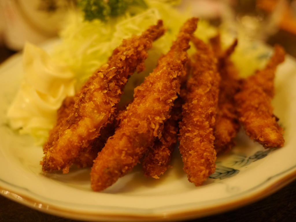 わかさぎフライ 300円 旬のわかさぎ、一匹一匹がかりっと見事にあがっています。とてもおいしい。