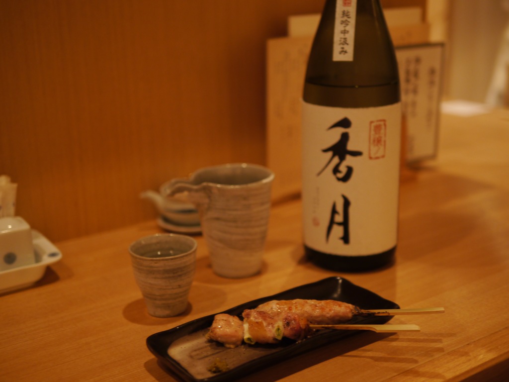 もう一杯と大信州の香月をいただきます。とても飲み口のいいお酒、つくねと鳥串もおいしい