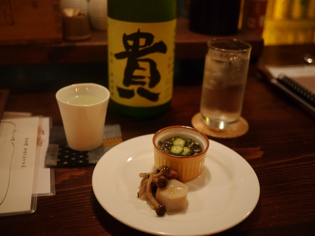 すすきのでの職場の宴会の後、立ち寄りました。ちょうど、カウンタがあいていて、お店に入ることができました。一次会の飲み放題でだいぶビールを飲んでさっそく日本酒をいただきました。