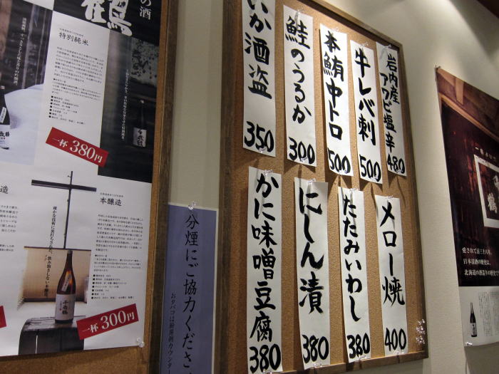 札幌駅すぐそばの立ち飲み鶴の蔵で、稀少な生酒、華味之至(しかみ)と鮭のめふん