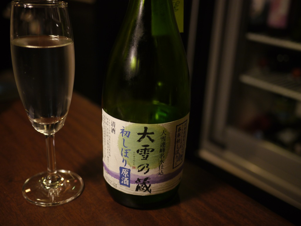 さすが道産酒BAR、〆のお酒も北海道産酒、大雪の蔵の初搾り原酒、北海道のお酒づくしのすてきな空間。この日、この日良いお酒のはしごにかなり酔いがまわってしまいました。うつろな記憶の中で、道産のお酒に囲まれて飲める幸せな雰囲気のいいお店という印象は残ることになりました。