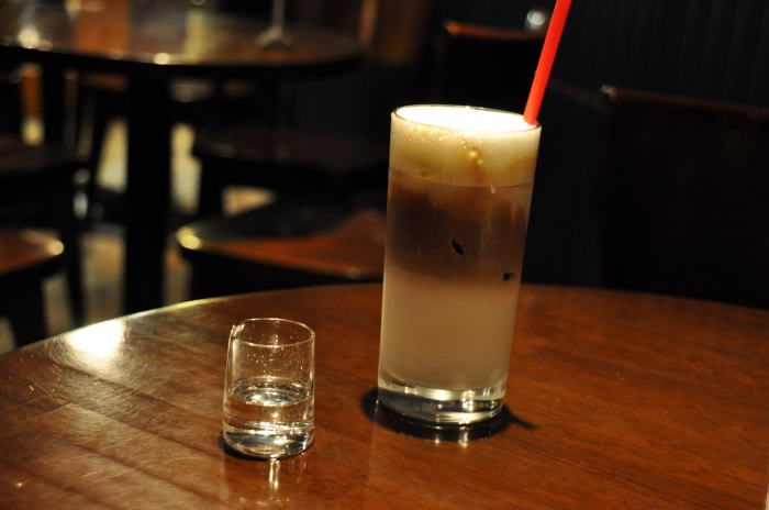 暑い日の夜、ケンズカフェで珈琲を飲んで帰ろうと思い、席についてカフェラテをお願いすると温かいのですか、冷たいのですかと聞かれて、カフェラテは温かいイメージだったので、意表をつかれて冷たいのと答えてしまいました。エスプレッソの苦みや香りの味わえるおいしい珈琲でした。