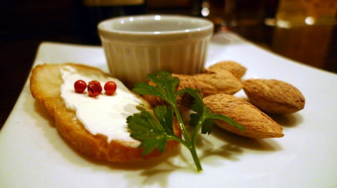 お通しの殻付きアーモンドはかりっとした食感が楽しめます。