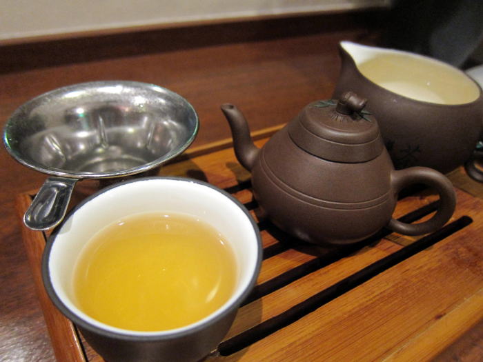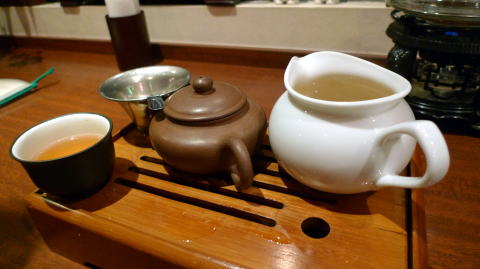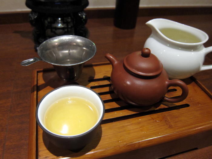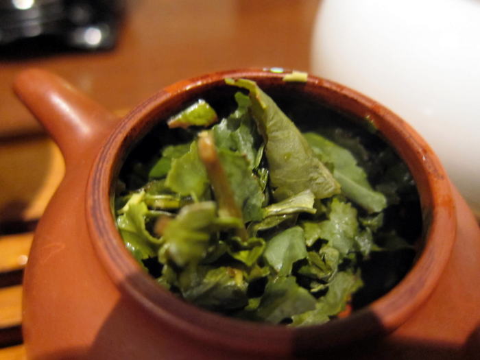 一回目のお茶をいれたあと、中国の急須の中をみるとみごとに葉がひろがっていました。このあと2回目、3回目とのみましたが。しっかりとおいしい味が出ていました。