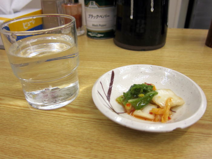 まずはキムチをつまみながらつけ麺の到着を待ちます。