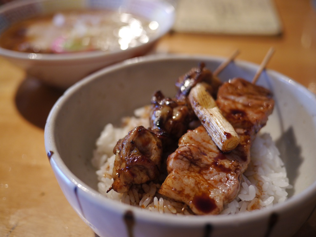 ラーメンとセットで一緒にいただいた焼き鳥丼、焼き鳥やむやで43年ひきつがれてきているという秘伝のたれがたっぷりの焼き鳥を見ると、熱燗をいただきたくなりましたが、車できたので飲めません。梅の宿飲みたかった。