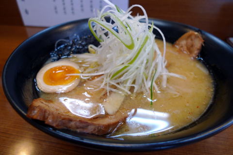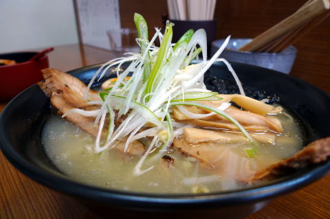しお 800円 大きなとろとろのチャーシューに半熟卵、フレッシュな白髪ねぎメンマ等、盛りつけも美しいです。