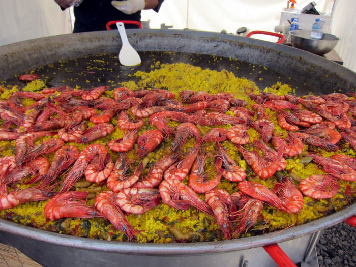 会場を回るとおいしそうなものがたくさんあります。これは巨大なフライパンで作っているパエリアです。