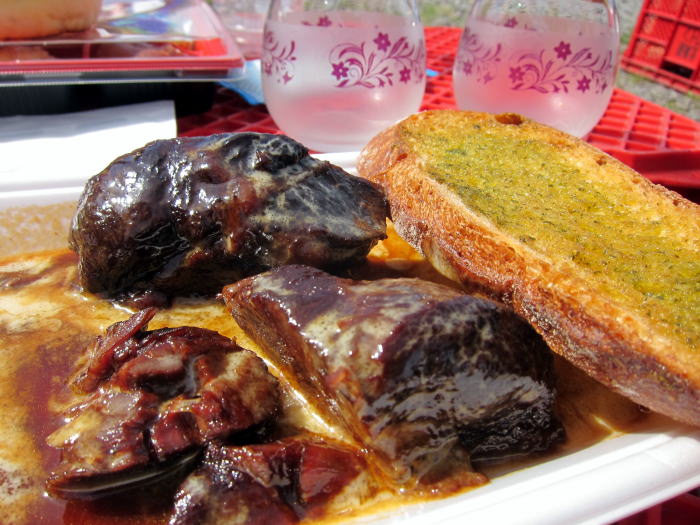 パスツールで購入したのは口の中でふんわりと、ほどけるおいしい煮込みです。一緒にサービスしてくれた自家製パンをソースにつけて食べました。