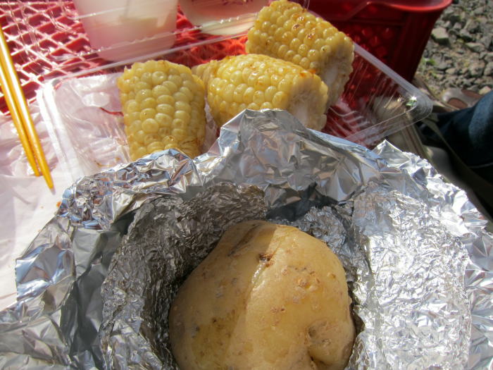 特においしかったのは地産地笑と書かれたお店のピュアホワイトの焼トウキビです。ピュアホワイトはゆでていただくことが多く、他に、そのまま生でも甘くおいしいとうきびですが、焼トウキビが200円でいただけました。丁寧にやいていただき、醤油のこげる香りとトウキビの甘さがよくあっています。