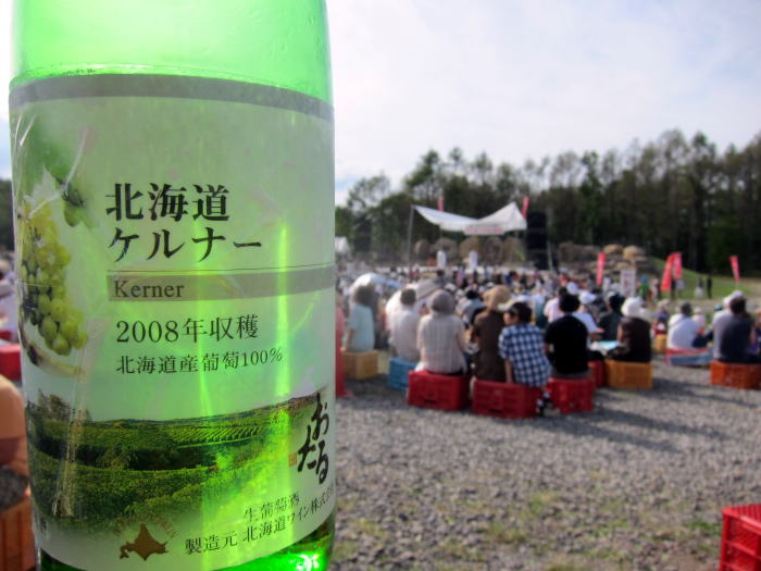 秋らしい、とても気持ちの良い風が吹く晴れた日に向かったのは小樽駅から30分ほど中央バスの無料送迎バスに揺られて毛無峠にある北海道ワイン工場で開かれているワインフェスティバルです。会場について、最初にのんだのはワインでなく北海道ワインで作っている地ビールです。1杯300円とうれしい値段でした。