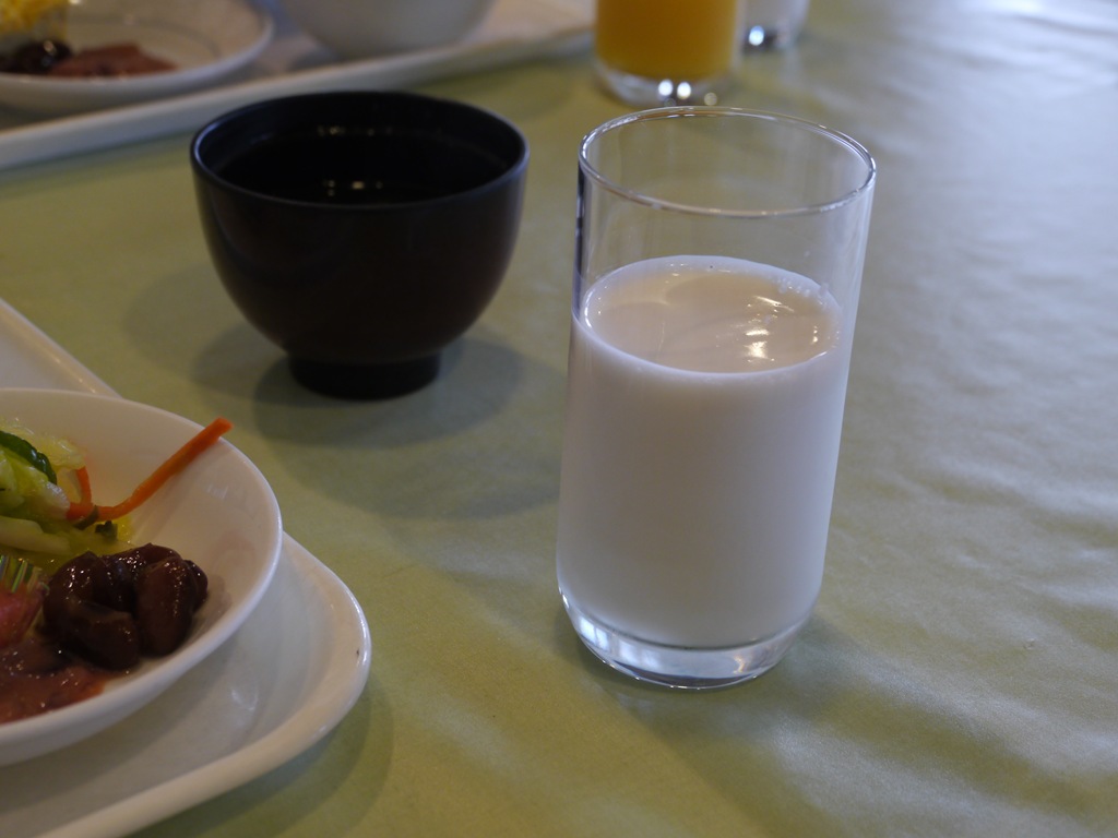 お散歩のあとの朝食、牛乳がとてもおいしく感じます。