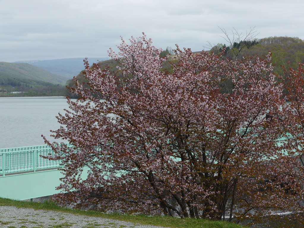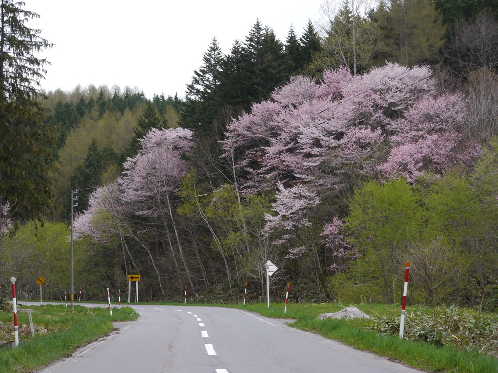 この日のお目当てはとにかく、温泉でのんびりということで、寄り道をしないでひたすら白金温泉をめざします。桜が途中見事