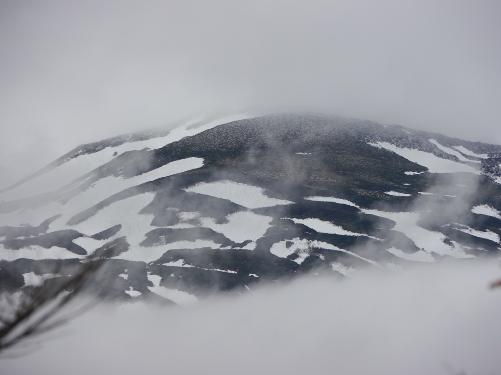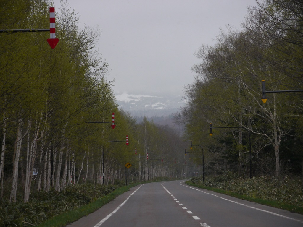 白樺街道を走ると山並みが雲の間に見えてきました。