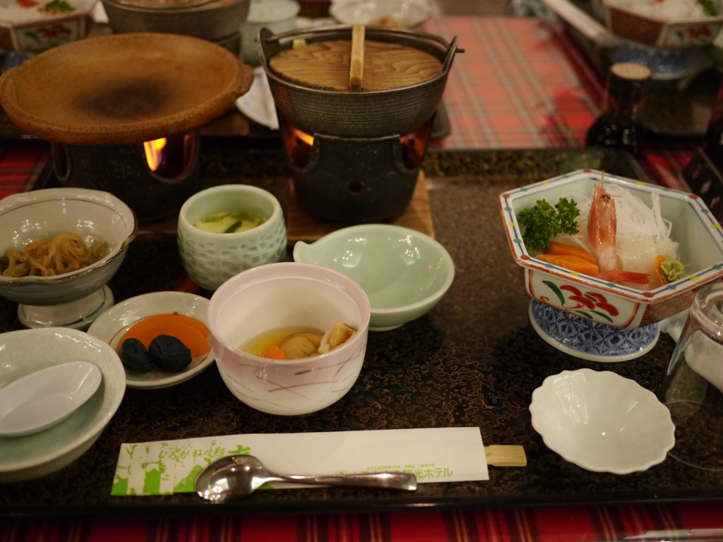 軽く温泉につかってすぐに食事会場へ、おなかがすきました