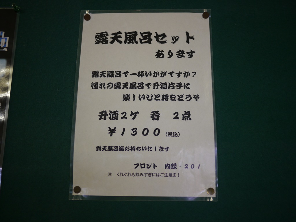 あがってから発見、露天に届けてくれる露天風呂セット、またの機会があればぜひ試してみたい