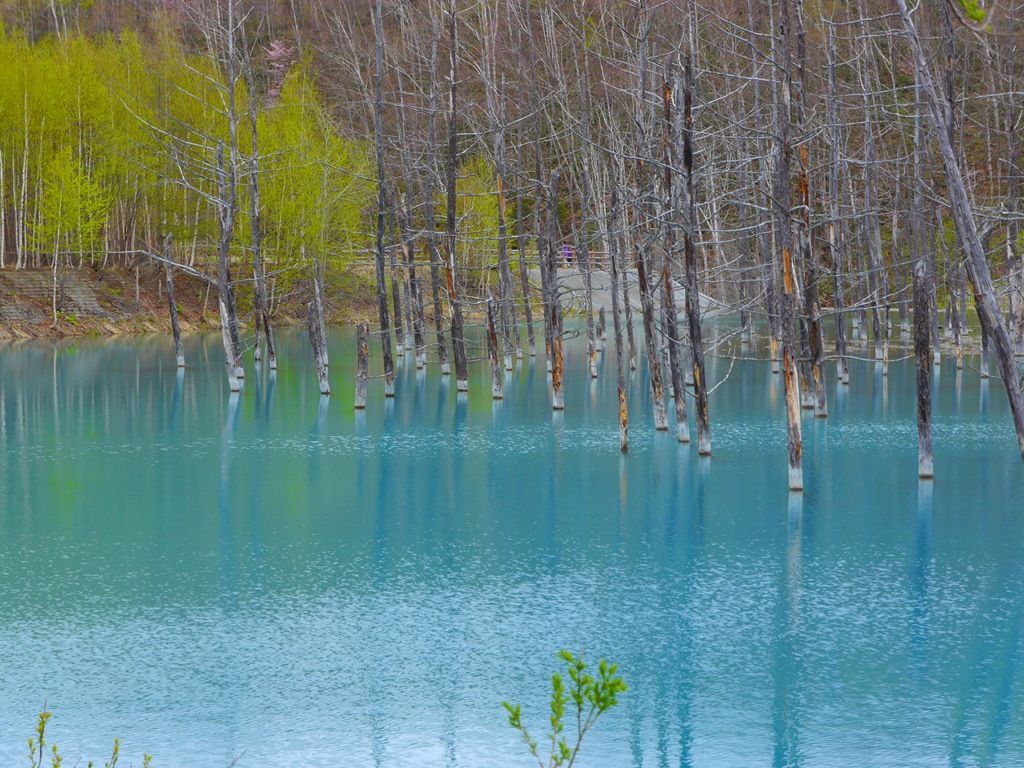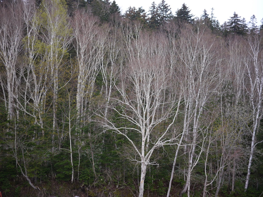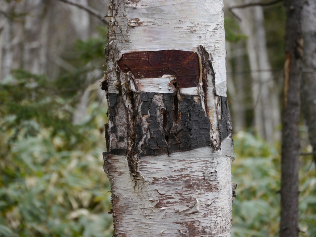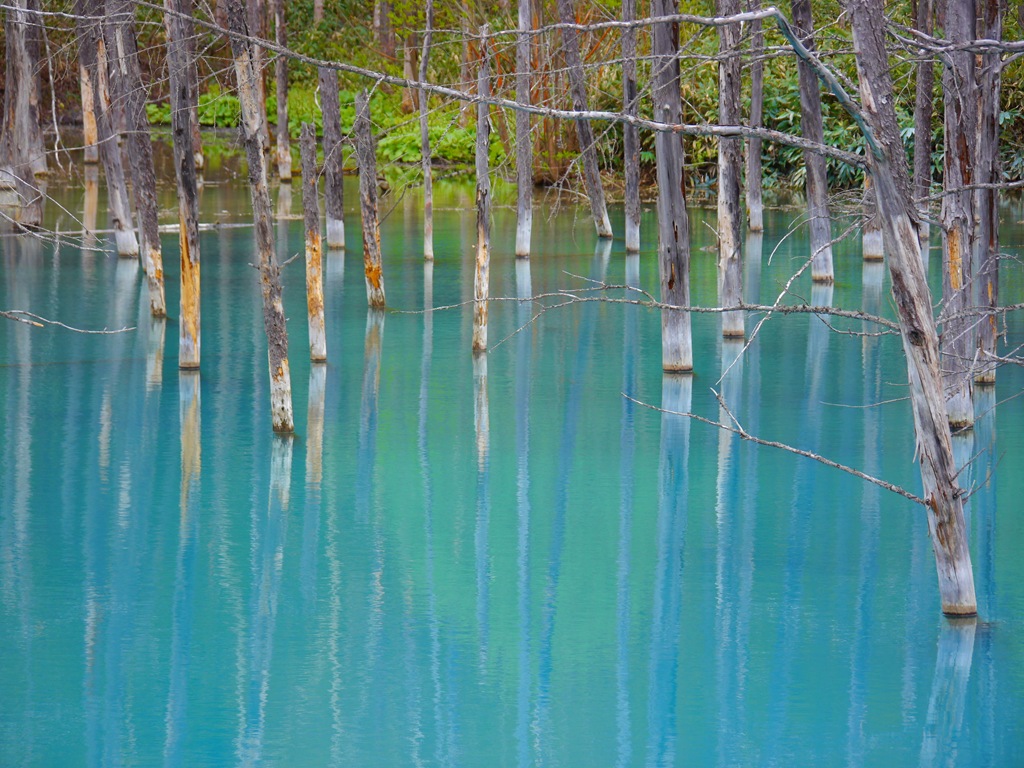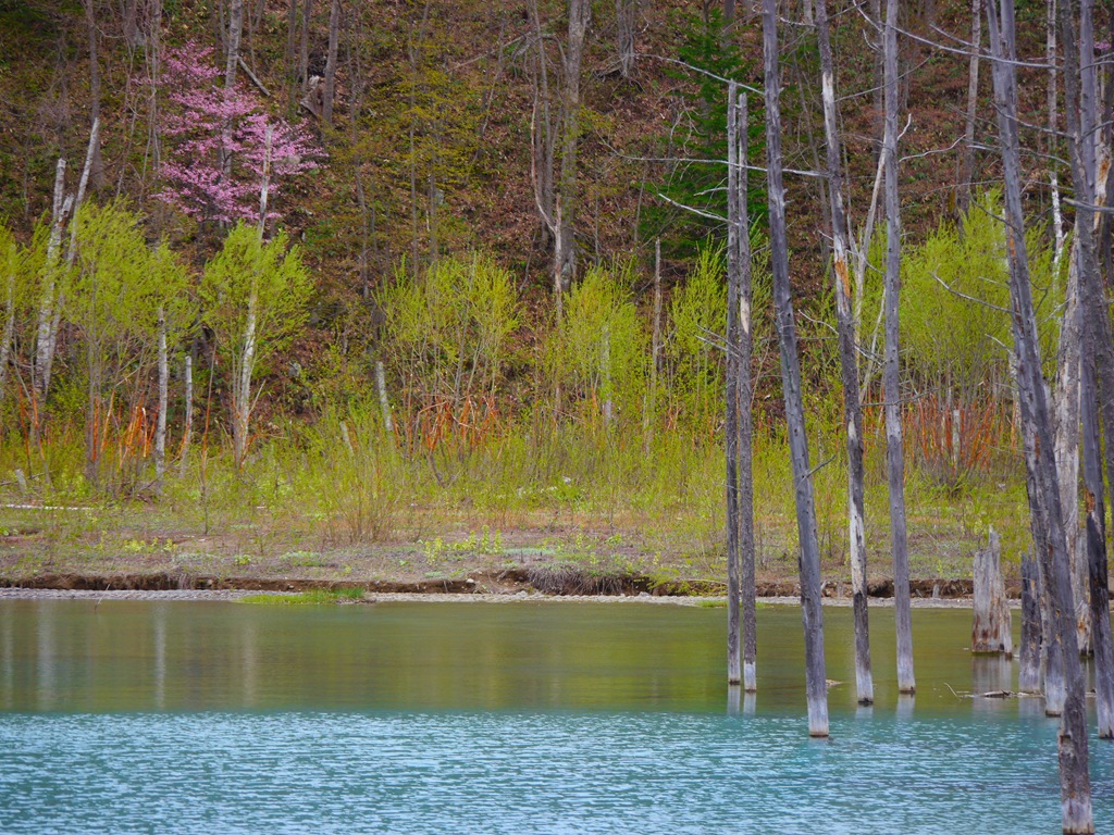 宿を出発して青い池へ 途中白樺の木をみると、熊の爪痕 自然のまっただ中が実感されます。
