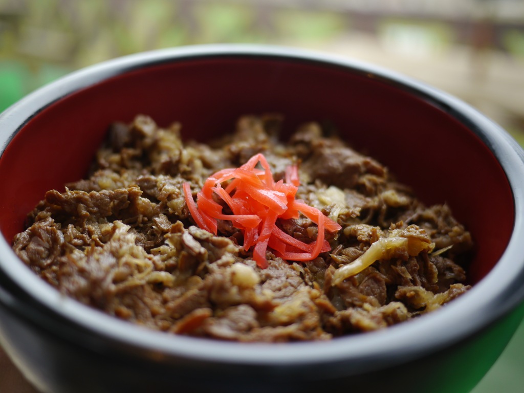 帰る前に腹ごしらへ、食べたのは美瑛の牛丼、とてもおいしい