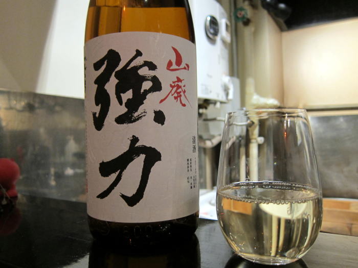 夜遅くにおいしい手打ちそばが食べられるうれしいお店朱月庵に立ち寄りました。たのんだ日本酒は名前のインパクトに圧倒されてしまいます。「強力(ごうりき)」というお酒、名前に負けずに飲んで存在感のあるお酒です。