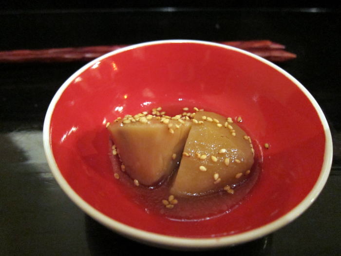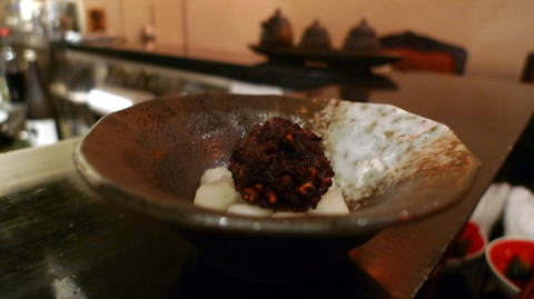身体にやさしい肴がでてほっとした気分になります。それにしても、黒い店内に赤い食器の取り合わせは美術的な空間に感じました。