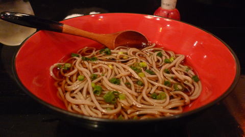 すすきのではしご酒をしたときに、最後に足が向いてしまうのが、すすきの0番地地下にある朱月庵、終電前の時間に伺うと、よく入れないことが多いのですが、この日は無事入ることができました。いつもながら、朱月庵に立ち寄る時はかなり飲んでて申し訳なかったのですが、暖かいおそばとそば茶割をお願いしました。