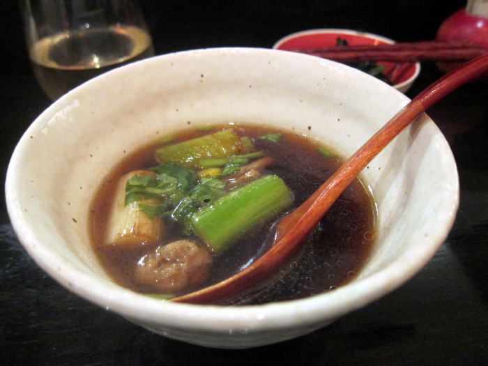そばつゆとねぎ、かものつくねは最高な取り合わせです。お酒がすすみます。