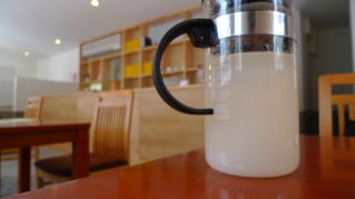 おしゃれなそば湯の入れ物です。うれしいことにかくはんができておいしくそば湯を飲んでもらおうという気持ちが伝わります。 お寺の駐車場にあるため、駐車スペースはかなりあり、車でいっても安心です。営業時間が15時までということで注意が必要です。
