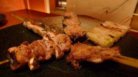 串焼きおもてコース この他にもつくねと小鉢がつきました。どれもおいしくて満足の串焼きです。