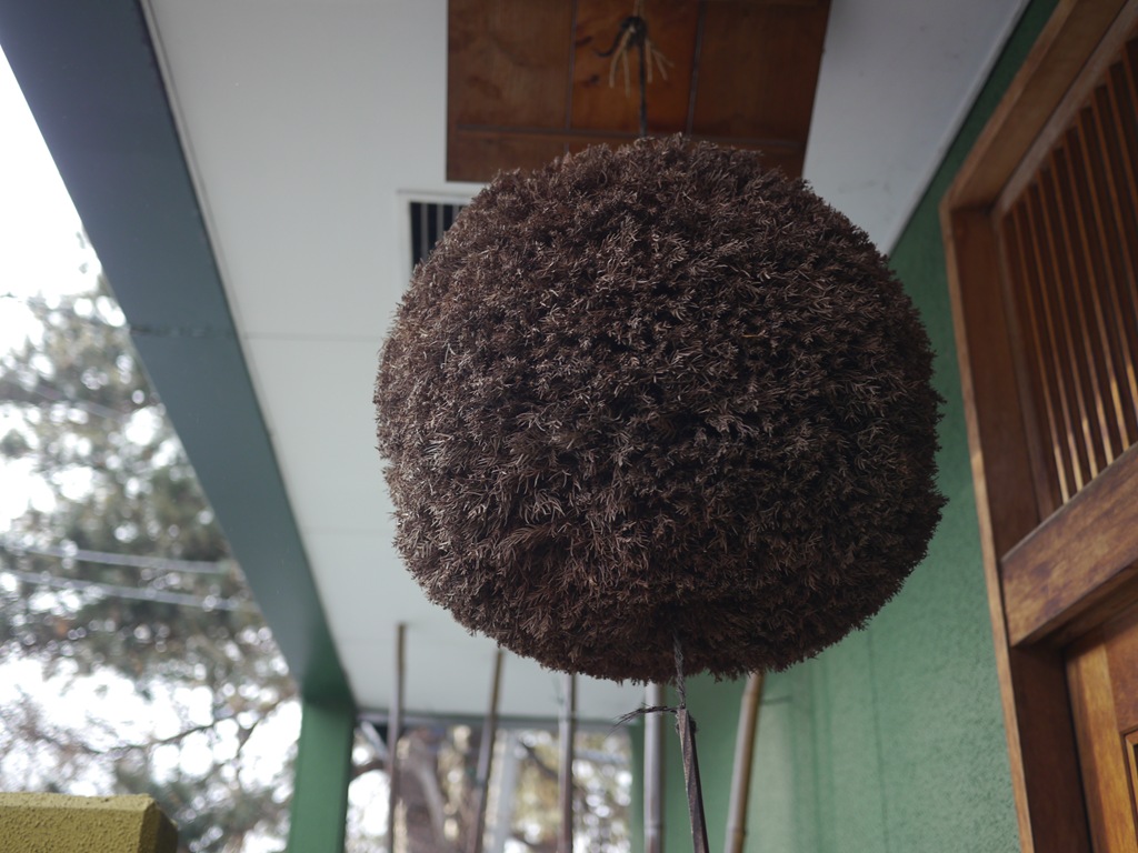 伏見稲荷の向かい、大きな酒林に目がいきます。お昼も遅い時間でしたが、うれしいことに営業中でした。鬼はそと福はうち、札幌の街並みを見ることのできる素敵なロケーションでカレーうどんとなりました。