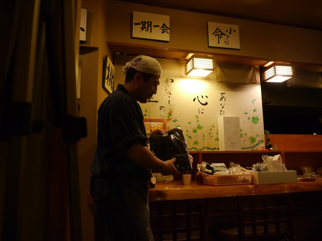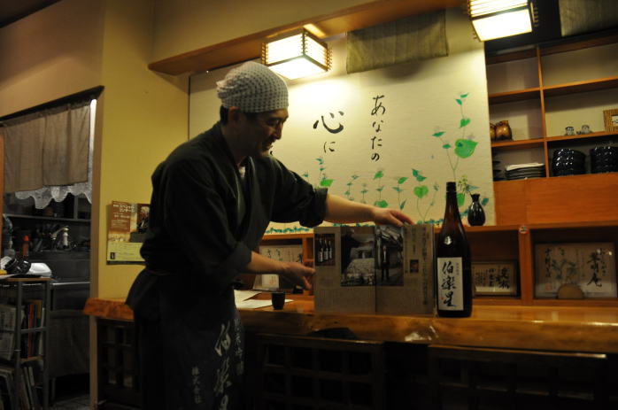 五種類目に登場したのは翠明庵で定番のいつものお酒、伯楽星特別純米です。2011年3月号のdancyuに載っている新澤巌夫さんの写真をみて店主の楽しい話がはずみました。