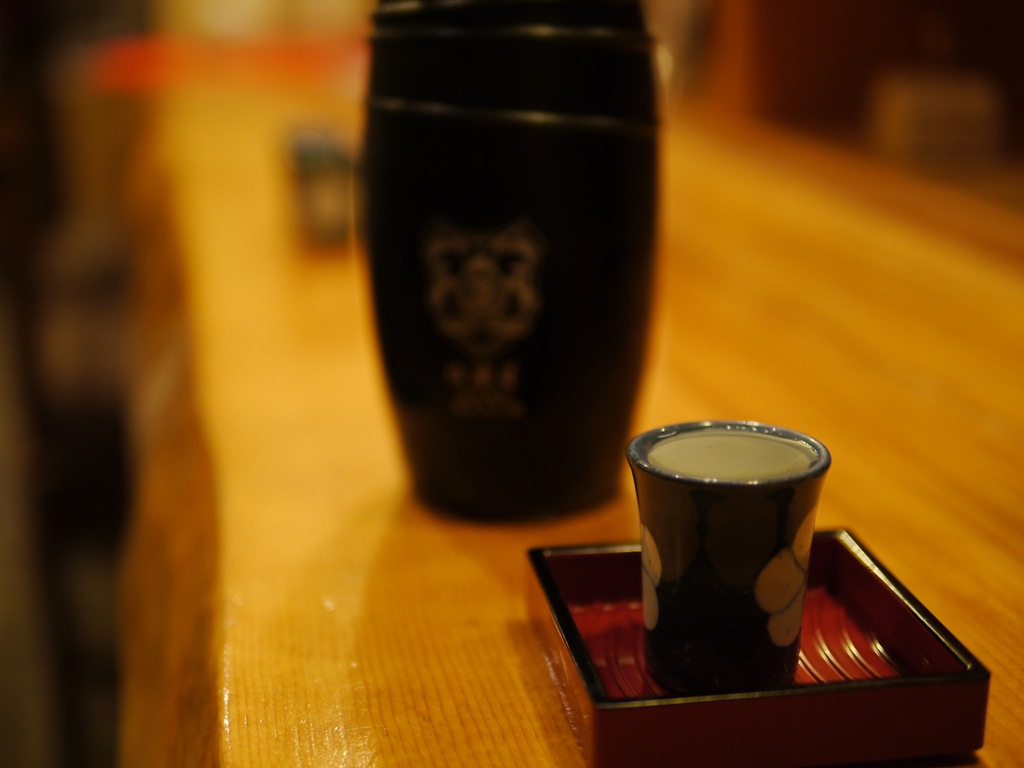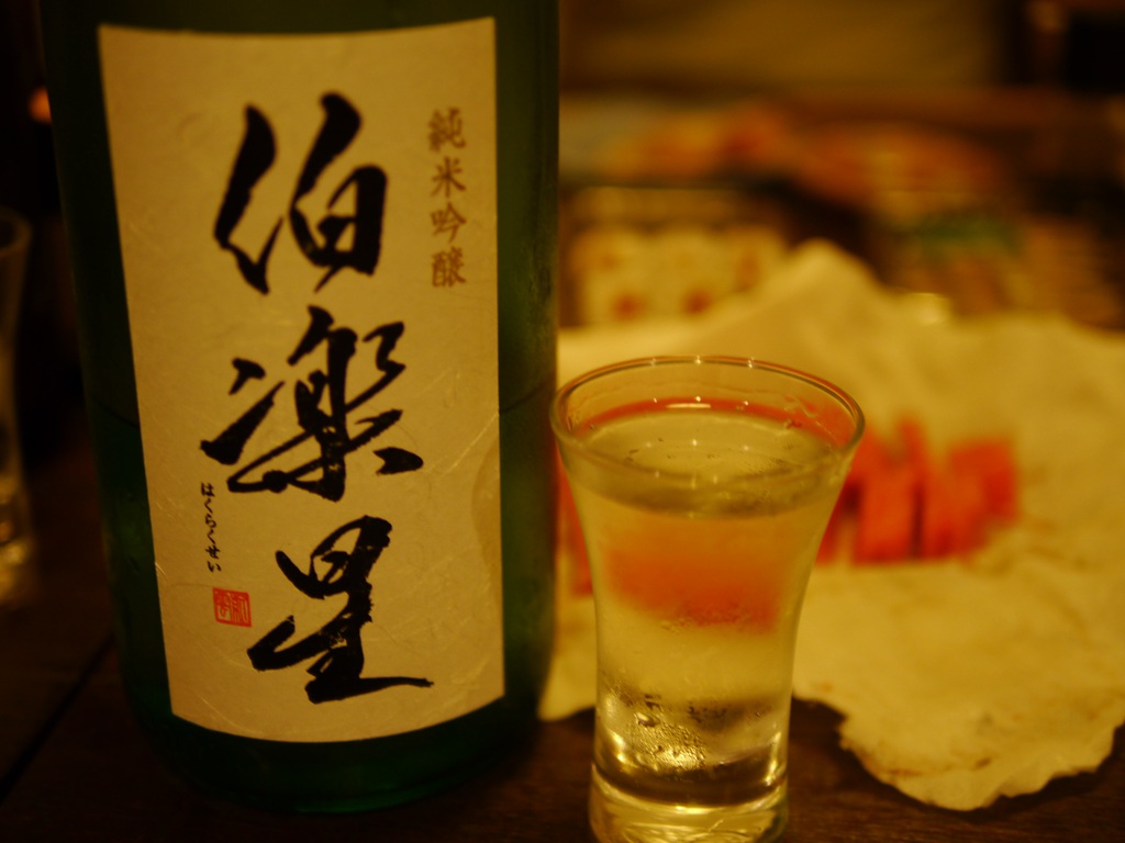 秘蔵酒をいただいたあとで、また、最初に呑んだ伯楽星純米吟醸おりがらみに戻りました。たくさん呑んだ後にもさらにおいしい日本酒です。