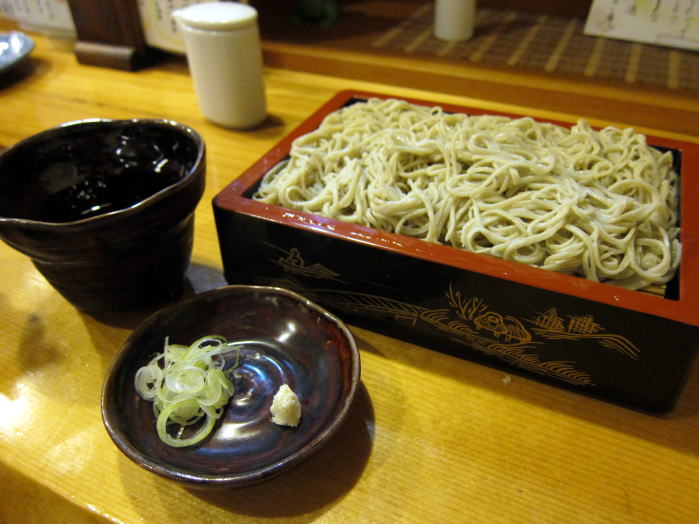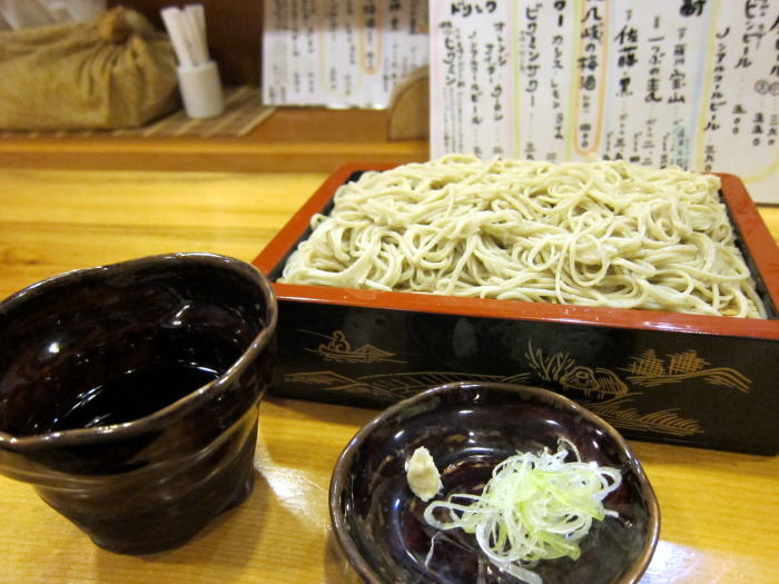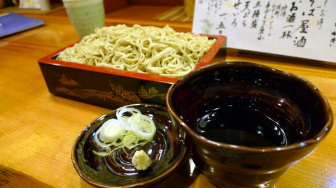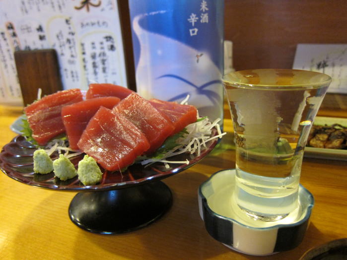 ここで、もう少し蕎麦屋酒を楽しもうとせいろの前にたのんだのは、まぐろ刺しです。西野の奥で食べて驚きのおいしいマグロでした。一緒にたのんだ日本酒は手取川夏純米辛口、夏らしい爽やかなラベルで、その名の通り夏においしい辛口のお酒ですが、のんでいるうちに旨みが増してくるおいしいお酒でした。